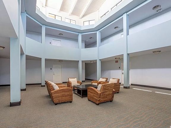 Enjoy resort-style amenities just outside your door: a sparkling pool, BBQ area, outdoor fire pit, lounge/meeting space, and a grand two-story recreation room. The building also features beautifully landscaped grounds with stunning palm trees.