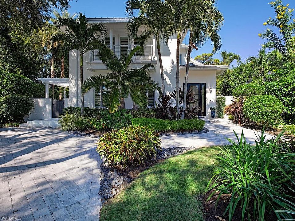 Perfectly positioned on one of Old Naples’ most sought after, mahogany-lined avenues, this coastal casual masterpiece delivers over 5,000 square feet of refined, effortless luxury living. Classic, timeless, and exquisitely finished, the light-filled open floor plan showcases a stunning great room designed for elevated entertaining. Built in 2015, this meticulously maintained residence lives better than new, featuring wide-plank wood flooring, plantation shutters, and a gourmet chef’s kitchen appointed with Wolf and Sub-Zero appliances. The indulgent, 1,000+ square foot primary suite offers a serene sitting area, an expansive walk-in closet, a morning kitchen, dual water closets, and a private covered balcony overlooking the manicured grounds. A spacious ground floor VIP suite provides flexibility for a main-level primary, and the home includes provisions for a future elevator. Thoughtfully designed with abundant storage, extensive built-ins, and two laundry rooms, the home blends practicality with sophistication. Lush tropical landscaping, palms, and curated flower and herb gardens create a tranquil backdrop for the sun-drenched pool and spa. Moments to the beach and the best of Old Naples, this exceptional residence embodies luxury living at its finest.