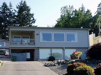 Watch the world float by while enjoying your expansive bay and town views from this Hillcrest home. Sunny northern exposure, great deck to enjoy the summer sunsets! Comfortable, open living area with fireplace and lots of windows to take in the waterfront activity. Full daylight basement with it's own driveway, second kitchen and separate entry. Oversized lot with low maintenance landscaping allows for you to lock the door and get out on your boat!