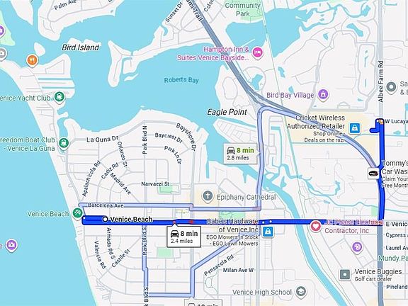 Unbelievable location in the middle of everything! A short 5 minute walk to restaurants, shopping, salon, and the bus stop. A very short 2.4 miles to Venice Beach! Enjoy the carefree lifestyle in this corner unit 2 bedroom 2 bathroom single story condo. November 2024 AC. One car enclosed attached garage is a perfect place for your bicycle and car. The community pool is just outside your backdoor. Water, trash pick up, washer and dryer inside unit, and lawn maintenance is included giving you more time to enjoy living your best Florida life.