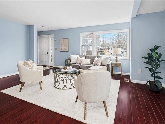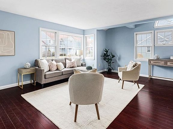 Offers due by 5:00 PM 2/12/24 with 24 hrs for seller review. Seller reserves right to accept offer at anytime. Spacious and bright living room with open concept floorplan & hardwood floors open to dining room perfect for entertaining & living needs. Dining room next to renovated stunning kitchen with beautiful white cabinets and stone countertops, also updated 1/2 bath. Two large bedrooms with double closets are found on the second floor. Primary bedroom special feature is a julliette balcony where one can enjoy a morning cup of coffee or afternoon relaxing. Updated beautiful Jack & Jill full bath with new double vanity, white stone countertop. Lower level has quite a large family room with a gas fireplace. Additional storage & laundry area adjacent. Location is excellent, close to shopping, restaurants, commuter train station & golf. Recently replaced vinyl siding, roof, composite rear deck & steps. Two miles to Commuter Rail. Furnace replaced in 2021.Complex not FHA approved.