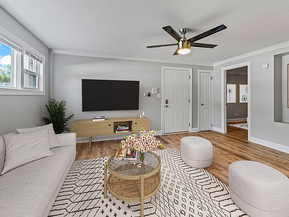 Contemporary finishesClean refreshed surfacesBright open floor planGenerous natural lightAmple storageEat-in kitchenNewly refinished hardwood floors
