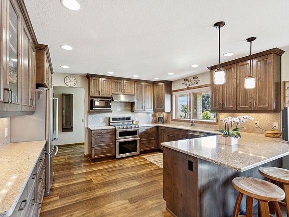 Golf course living minutes from the fairway with views of the gorgeous Mission Mountains to the East and a peek a boo view of Flathead Lake to the West. Plenty of room for family, big shop/garage/RV space in the back, and income possibility with a mother in law apartment in the basement. This updated home with mature landscaping has a beautiful kitchen with all Kitchen Aid appliances including a gas stove and double oven. The kitchen has ample storage and an open floor plan that leads out to a covered patio perfect for entertaining or quiet summer nights. Home office, guest bedroom, laundry and primary suite are all located on the main floor. In addition to the large attached garage & small shop is a detached 2 bay garage and shop with electric heater and an RV storage pad (access to water and electric) which has a separate entrance via the bonus driveway off of Bayshore Drive. Your own space for your golf cart and RV- no need for a storage unit with this home! Downstairs is a huge open area which includes a kitchen (just needs a frig), 2 bedrooms, a bathroom, storage room and utility room. Possibilities are endless for this space! There is a second hot water tank and a water softener which is not hooked up in the utility room. This home is unique as it has an entry off of Bayview Drive and Bayshore Drive. Automatic sprinklers and drip system make lawn maintenance a snap. Low maintenance aluminum siding on both house and garage/shop. Beautiful antique fence in the backyard. Peaceful neighborhood and low maintenace means time for recreation, family and friends! Contact Kathleen Devlin (406) 381-4720, or your real estate professional.