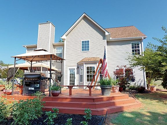 Lake front living with exceptional curb appeal! Craftsman style 2 story home perfect for a large family with 5 bedrooms, 2 1/2 baths, spacious sunken family room with laminate wood flooring, kitchen with tile floors, granite counters, solid wood cabinetry, pantry, breakfast bar, breakfast nook and formal dining room. Drastically over-sized master suite with sitting room, separate tub and shower, separate his and her vanities, and a walk in closet. Home is wired generator ready as a backup power source. Back yard is perfect for entertainment on the 30x20 deck with built in fire pit overlooking the lake. Multiple fruit trees include apple, peach, pear, plum and blueberry bushes as well as a garden area. New roof and septic system.