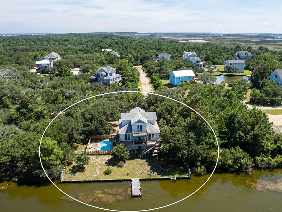 Nestled beneath a canopy of majestic live oaks, this 3 bedroom, 3.5 bath canalfront custom home is a true coastal retreat. Situated on a 1/3 acre lot with 100 feet of bulkheaded water frontage, the property features a private dock with direct access to the Currituck Sound—ideal for boating, fishing, crabbing, or simply enjoying sunset cruises. Located on a quiet dead-end street in the off-road 4WD area of Carova Beach, this home offers both privacy and the unique charm of wild horses roaming freely nearby.