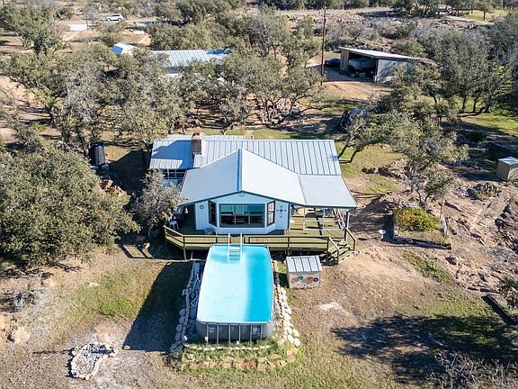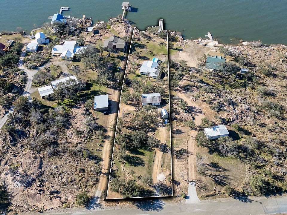 Lake Buchanan waterfront retreat with 1 acre of land plus 4.88 acres of submerged rights and approx. 110 ft. of waterfront, plus a private pier , a rare combo that offers privacy and long-term shoreline enjoyment. This charming lake home features 2 bedrooms, 1 bath, an open living/kitchen layout, and an easy flow for relaxing weekends or full-time living. Enjoy peaceful Hill Country surroundings, spectacular sunsets, and plenty of space for outdoor fun, pool days, patio lounging, and evenings under the stars. Bonus: 864 SF garage/efficiency building (stubbed plumbing) ready to finish out as a guest suite, game room, workshop, or future STR income-producing space. Major updates include metal roof (2023–24), new HVAC (Oct 2024), updated plumbing fixtures (Oct 2024), and new well pump (Sept 2025). A true lake place with room to expand, unwind, and make memories for years to come.