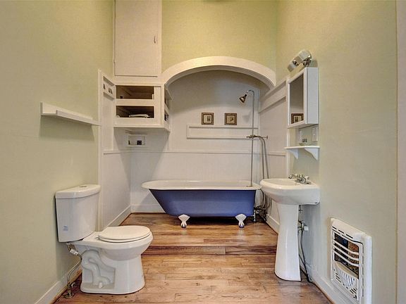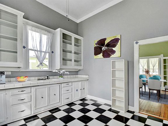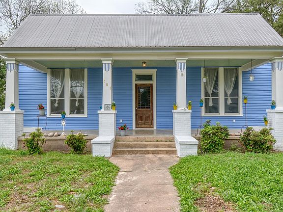 Timeless Classic! Step back in time and admire the Craftsmanship of this move in ready home, wonderfully located in the sought after historic district on a large corner lot! Enjoy the bright and open rooms, large windows and original decorative trim on interior walls with 12ft - 14ft ceilings throughout the house. The front door has stained glass and transom. This home retains the period correct details original to the house while incorporating essential modern upgrades such as the metal roof, house completely rewired in 2018 and is up to code with 6 smoke detectors. Stay comfortable with the incredibly efficient 5 zone Daikan mini split system (installed in 2022 comes with a 10 yr warranty) that allows heating or cooling of individual rooms, saving money monthly without having to heat or cool the entire house at once. The Hardwood floors were refinished in 2022. The interior was repainted in 2021 and the exterior was repainted in 2022. Enjoy the Cast Iron claw foot bathtub in the main bathroom. The detached 2 car garage is has an attached 250 SF workshop. The garage space is on a cement slab, and could possibly be converted to a rental living space as electricity, water and sewer fixtures are at the garage exterior. The next owner of this home will be just the fourth owner of this classic piece of downtown Smithville history! You will be within walking distance of historic downtown antique stores, shops, restaurants and Train park. Note: This home was virtually staged.