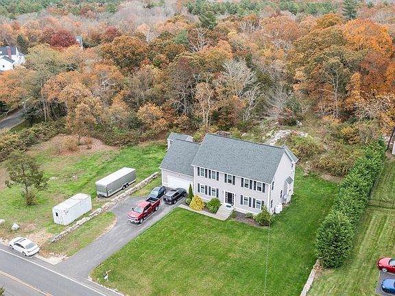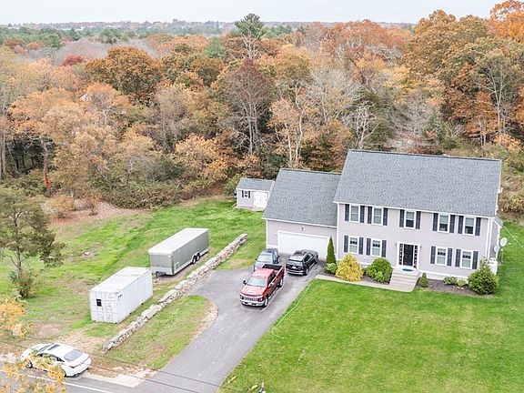 This beautiful, like new, very young custom Colonial is over 2,500 sq. ft. and sits on a fabulous 2.46 acre wooded lot. The home features high end kitchen cabinets, gorgeous granite countertops and a lovely tile floor. New hardwood floors and 2.5 baths with tile floors and central air. Great location, close to beaches and shopping. Easy highway access to Providence and Boston. Please see the floor plan attached and Matterport virtual tour.