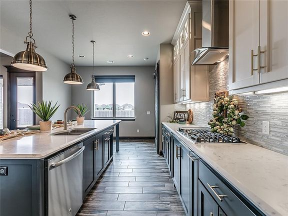 Absolutely stunning custom-built home by League Custom Homes. You are welcomed into the home with 8-foot stunning double doors, beautiful wood-look tile flooring and a towering rock fireplace. The kitchen is designed to impress with a large island eating area, abundant storage, stainless steel appliances, and striking contrasting upper and lower cabinets that add depth and character. The spacious master suite features a tray ceiling, a luxurious soaker tub, separate shower, and dual vanities. The master closet is thoughtfully designed with built-ins and convenient off-season storage along the top row. The laundry room offers plenty of storage and a sink, perfectly located next to the mud bench and master closet. Two of the bedrooms have been combined into one large room. The room could be converted in to 2 rooms and a closet could be added where the small office space/transition room is located. This inside/outside transition room is a unique highlight of the property and is ideal for a small office, kids or pets—with an attached indoor safe room for peace of mind. Outdoors, enjoy a beautiful gunite pool with heating capabilities, a relaxing hot tub, and a full safety fence surrounding the pool area. This backyard retreat perfectly combines fun, relaxation, and security.