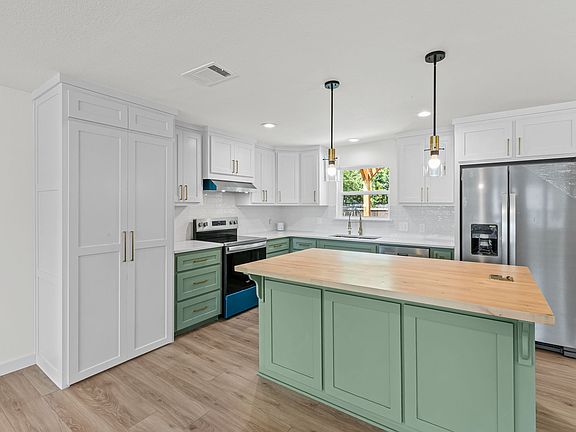 Central air and heatRemodeled homeOpen kitchen conceptSecurity systemWalk-in pantry