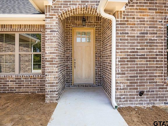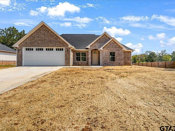 Beautiful new construction brick home located just outside the city limits of Tyler, offering the perfect blend of privacy and convenience. From the long driveway with plenty of parking for guests to the open concept living room with vaulted ceilings, large windows, and a cozy fireplace, this home was designed for both style and comfort. A designated dining area welcomes you as you enter, leading into the kitchen featuring a spacious island, custom cabinets, and marble countertops. The guest bathroom includes a shower/tub combo, while the private master suite showcases a coffered ceiling, a large walk-in closet, and a spa-inspired shower. Neutral paint, flooring, and finishes throughout provide a modern, move-in ready feel, and the spacious backyard is ideal for relaxing or entertaining. Ready for its new owners—schedule your showing today!