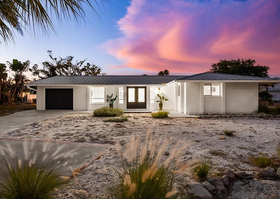 Some homes whisper. Others make a statement. 501 De Narvaez Drive commands attention—with bold architecture, elegant updates, and a prime waterfront location that elevates the Florida lifestyle into something exceptional. Nestled on a quiet corner lot in the coveted Sleepy Lagoon Park neighborhood, this home is your gateway to prestige, privacy, and the purest form of coastal living. Spanning 1,708 square feet of refined single-story living, this 3-bedroom, 2.5-bath residence is a masterclass in modern comfort and timeless materials. Designed with block construction and finished in stucco with a durable metal roof, the home is as solid as it is stylish. Inside, terrazzo flooring sweeps across the entire home, providing a sleek and enduring foundation underfoot. Enter into a light-drenched open floor plan, where the layout has been carefully crafted for entertaining, lounging, and effortless day-to-day living. The living room flows into a dining space and gourmet kitchen—outfitted with stone counters, solid surface tops, a spacious island, and stainless steel appliances including a convection oven and cooktop. Whether you’re entertaining guests or enjoying a peaceful morning coffee, every room connects you to the water and the outdoors. The primary suite is an owner’s haven, complete with a walk-in closet and full bath featuring a tub/shower combination. Two additional bedrooms—each with walk-in closets—offer comfort, functionality, and flexibility. A second full bath, half bath, and spacious laundry area provide all the elements of ease and convenience. But what truly defines this home is what lies beyond the doors. A private, heated pool, enclosed within a screened lanai, becomes your year-round sanctuary. The oversized covered deck is perfect for afternoon shade or sunset cocktails. And then there’s the water: with direct canal access to the Intracoastal Waterway, this home is a dream for boaters. The 2022 composite dock and concrete seawall are in pristine condition and ready for your vessel. No HOA means you can live your way, and with 1-month minimum leases allowed (rental license required), this property also offers incredible short- or long-term rental potential. Add in a two-car garage, central air, electric heat, public water/sewer, and fiber optic internet, and you have every modern amenity at your fingertips. This is more than just a home—it’s a statement of lifestyle. A bold, beautiful, and rare opportunity to own in one of Longboat Key’s most established and beloved communities, just moments from world-class beaches, golf, fine dining, and everything the Sarasota area has to offer. For the visionary buyer who seeks distinction, privacy, and water access—501 De Narvaez is where your story begins.