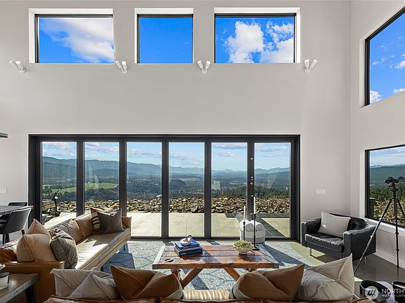 Perched atop of Durango Ridge, this custom-built home offers sweeping 180-degree views of Cle Elum, the Enchantments, and beyond. Designed with a modern open-concept layout, it perfectly balances style and functionality. Nano doors open wide to a hot tub and spacious al fresco dining patio, seamlessly blending indoor and outdoor living—ideal for entertaining or enjoying the fresh mountain air. Whether you're seeking a serene personal escape or an investment with the opportunity for a sought-after short-term rental, this home delivers. Situated on 23 acres, there’s ample space for privacy, expansion, or future development—all just a 90-minute drive from Bellevue and Seattle.