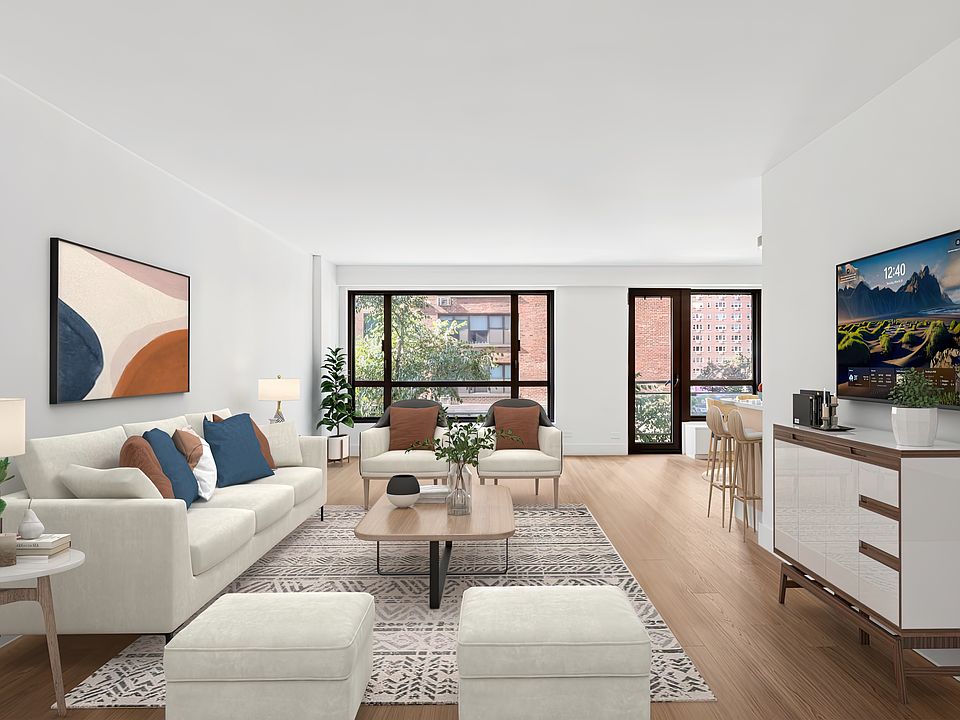 From the moment you walk in, you're welcomed by an open, sun-filled layout with oversized windows offering sweeping city views. Whether you're savoring your morning coffee or hosting a cozy dinner, the space is designed to impress. The chef-inspired kitchen flows effortlessly into the living area, making it ideal for entertaining without missing a moment.