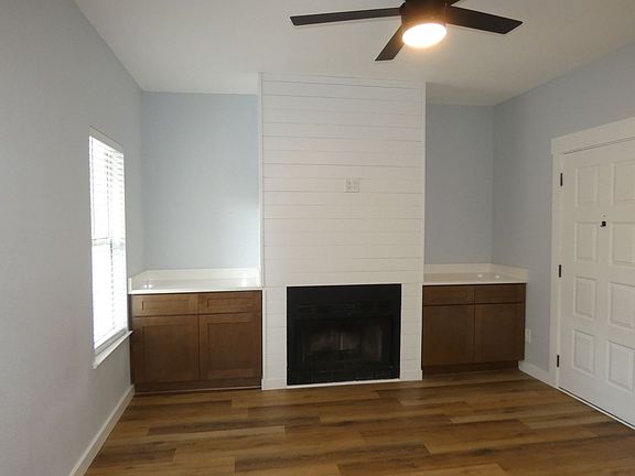Step inside to beautiful wood-laminate flooring, neutral paint, and an airy, open feel throughout. The living room includes a wood-burning fireplace enhanced with new shiplap, built-in cabinets for storage, and plenty of natural light from large windows.