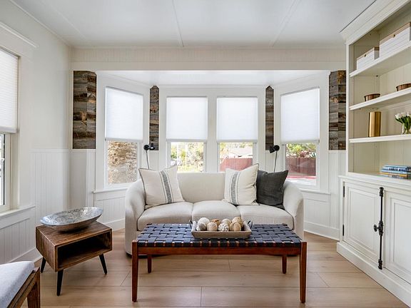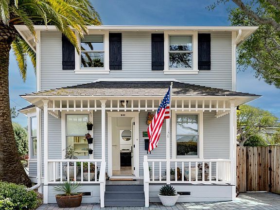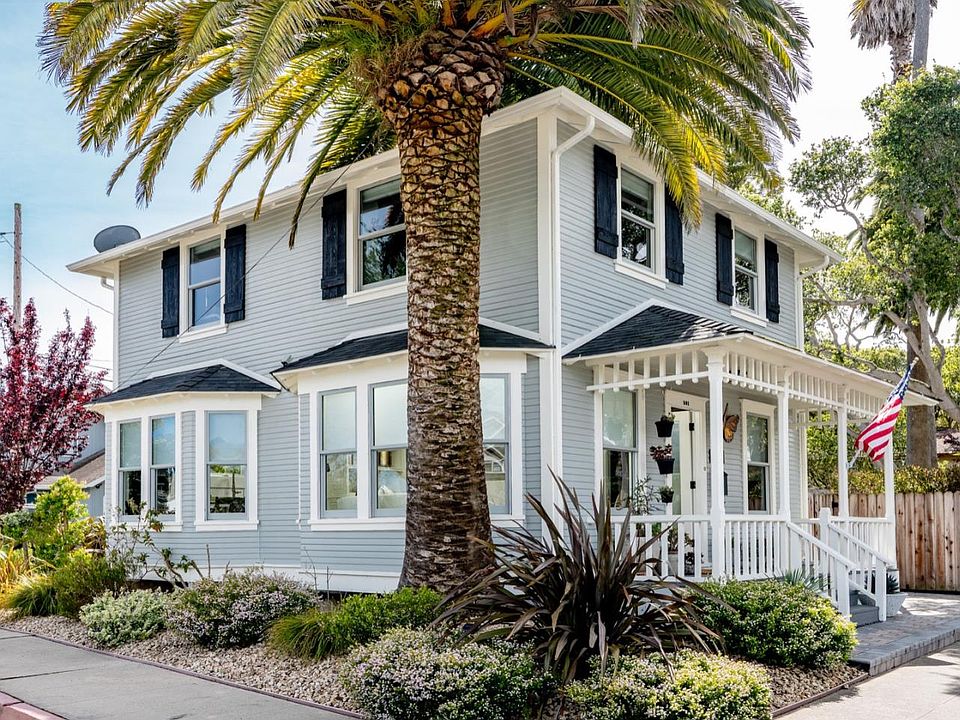 Located in the charming coastal town of Pacific Grove, this 4 bedroom 2.5 bath home has been tastefully updated, providing modern conveniences while retaining its historic charm. Welcomed by a covered front porch, you enter into a living area filled with natural light and the graceful, curved look of bow windows. The large kitchen boasts wide plank flooring, granite countertops, stainless steel appliances, and plenty of room for an island. Completing the downstairs is a bedroom, half-bath, laundry and pantry while three additional bedrooms upstairs all offer peeks of the ocean and original hardwood floors. The primary bedroom offers an en-suite bathroom with period details complete with a clawfoot tub. Featuring a beautiful backyard with mature trees and pavers, providing the perfect setting for outdoor gatherings with family and friends. Located just a few blocks from the ocean and Pacific Grove's charming downtown, making it easy to enjoy all the amenities the area has to offer.