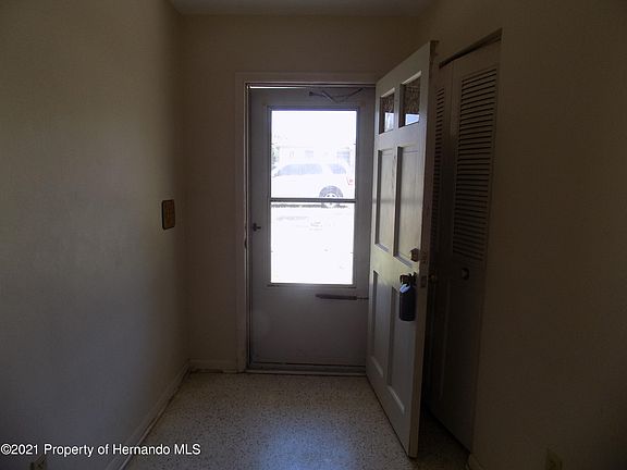 2 bedrooms, 1 Bath, Great Room, Vinyl enclosed florida room and inside laundry. Shed at end of the carport. Terrazzo floors. New A/C and new duct work in 2019. Roof was replaced in 2004. Kitchen has range and refrigerator. Great for a first time Buyer or Rental Property. This is being sold ''AS IS''.