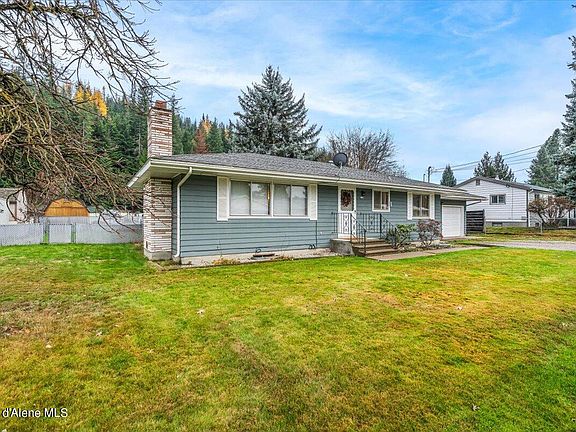 Welcome to this charming 2,520 sq ft rancher offering 4 bedrooms and 1.5 bathrooms and an attached 2 car garage all on a .23-acre lot. The main floor features 3 bedrooms and 1.5 bathrooms, an open kitchen/dining, and a cozy living room with a real fireplace and LVP flooring. Downstairs, enjoy entertaining with a wet bar, a second living room, a 4th bedroom, a fireplace, and ample storage. RV parking and a fenced backyard including a beautiful view of the surrounding mountains, garden boxes, and a shed. Pinehurst Golf Course and trailhead access to 22,000+ acres of BLM/Forest Service lands are nearby. Silver Mountain is 10 minutes away, and downtown Coeur d'Alene is 33 miles. Rural charm meets convenience in this recreational haven!