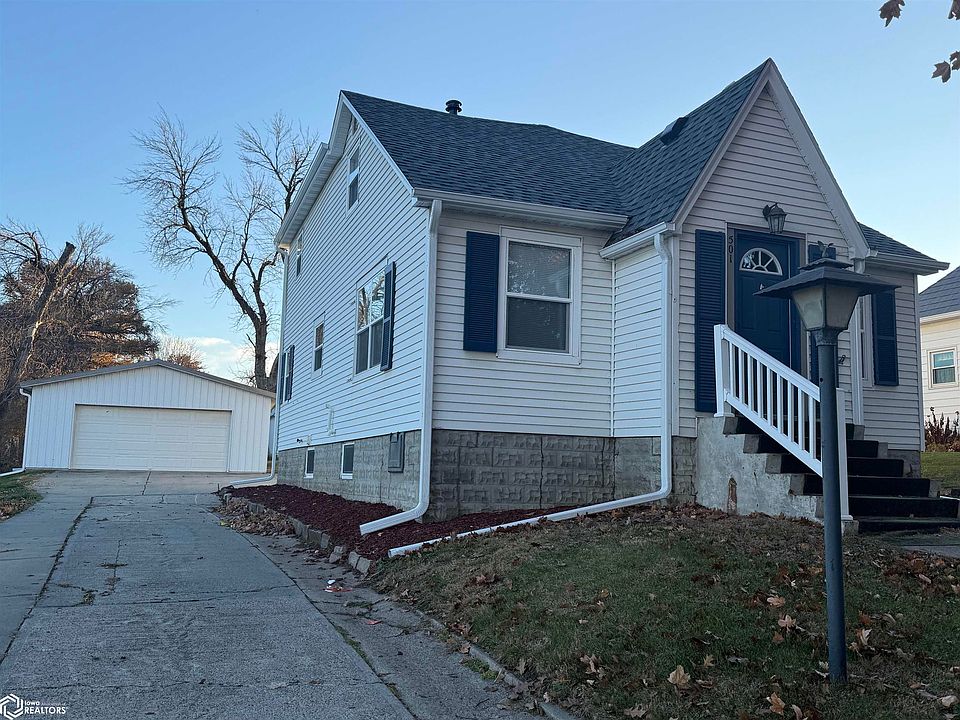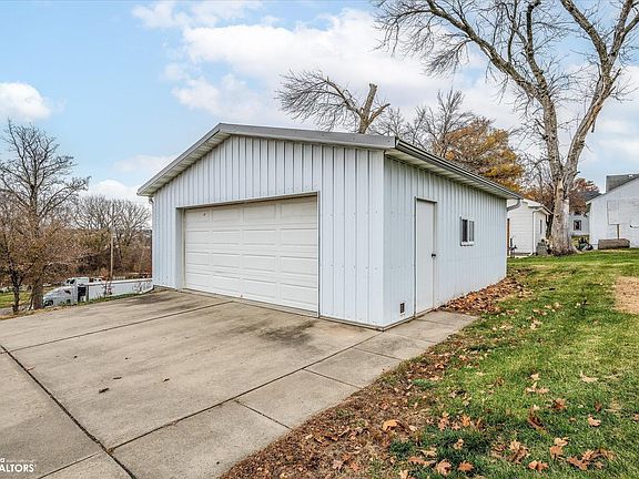 Comfortable 3-bedroom, 2-bath home with thoughtful updates, set on a corner lot with a 24' x 24' detached 2-car garage built in 2003. The main level offers a living room with fireplace, bath with walk-in shower, kitchen with ample cabinetry, dining area, generous laundry room with space for pantry storage, and a sliding glass door leading to a nice rear deck. Upstairs you’ll find 3 bedrooms and an updated full bath. Practical improvements include updated windows, roof and gutters replaced in 2025, HVAC system approximately 3 years old, vinyl siding, and an updated sewer line to the main. A well-kept Harlan home with the major work already handled and room left to put your own stamp on it over time.