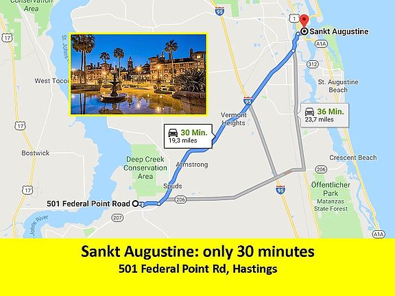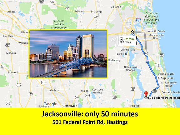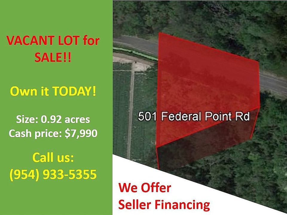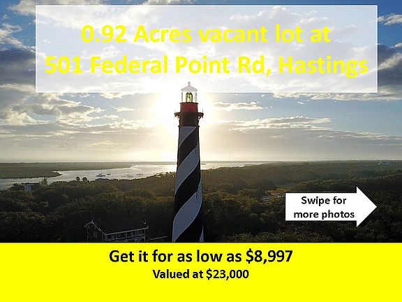 Have you ever dreamed owning your own land? Are you tired of crazy house prices? Come and visit this vacant .92 acres lot at 501 Federal Point Rd, St. Johns County. Assessed value is $23,000, we sell it for $7,990 if you pay in full. You save more than $15,000! Seller financing available, see below! You will just need a bit elevation and you get a property worth 3 times the purchase price! Do you like the proximity to a cosmopolitan city but at the same time aspire to enjoy nature and freedom? Are you seeking for a great value deal? Positioned in the heart of St. Johns County FL, your new lot at 501 Federal Point Road offers both tranquility and convenience with lush greenery. Are you tired of crazy real estate prices? Are you tired of building restrictions but at the same time you aspire the proximity to a cosmopolitan city? 2 minutes to Hastings, only 30 minutes to St. Augustine, 50 minutes to Jacksonville! Electricity and city water are at the street! ##Details: - Address: 501 Federal Point Rd, Hastings, 32145 - Property type: vacant lot - Terrain type: flat with mature trees - Size approx: 0.92 acres - County: St. Johns County - Geographic ID: 469300000 - Short Legal Description: SEC 18 TWP 09 RGE 28 29 PART OF SE1/4 OF NW 1/4 (EX PT TO SJC IN OR3021/1132) OR 902/391 &2994/1954 (Q/C) - Flood zone: AE - Annual Property Taxes: $252.60 - HOA: no - Zoning: Open Row - RVs permitted: no - Mobile houses: yes - Road Access: yes, paved - Electricity: yes, at street - Water: Water Line is available to the lot served by St. Johns County Utilities Department (844.752.8845) - Septic: will need septic ## Seller financing available! Contact us for more details. No credit check! No prepayment penalty! OR Get the property for as little as $8,997, which is another 30% discount on the already discounted seller financing price! Assessed value by County is $23,000. You save more than $15,000! What are you waiting for? Contact us now! ## Disclaimer: It is the buyer’s responsibility to perform a due diligence prior to any property purchase! Buyer must verify all utilities or any property plans with St. Johns County and/or City of Hastings. Seller makes no warranties or claims as to utilities or plans to build on the property.