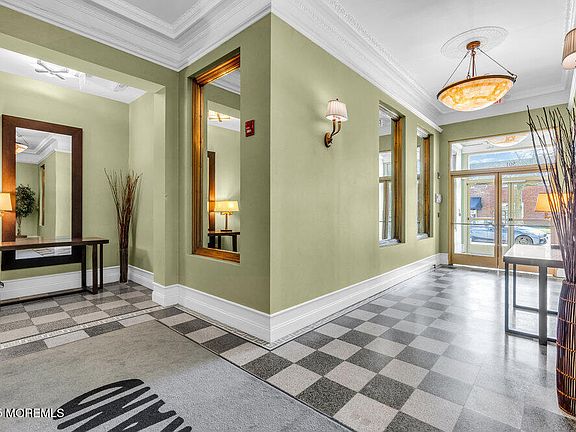 You'll love living in this light-filled 1-bed / 2 bath apartment in the Asbury Grand - an historic, premiere building located in downtown Asbury Park. Spectacular views from the huge windows in this corner unit. Huge open plan living room / dining room, well appointed kitchen with stainless appliances, and a large alcove area perfect for an office, TV room or extra sleeping. Spacious primary bedroom has plenty of closet space. Hardwood floors throughout. Central AC, washer & dryer in unit, plus an assigned parking spot in the building's private, gated lot. Building also offers a private fitness room. All this conveniently located in the heart Asbury Park, close to the action, the train station & the beach / boardwalk.