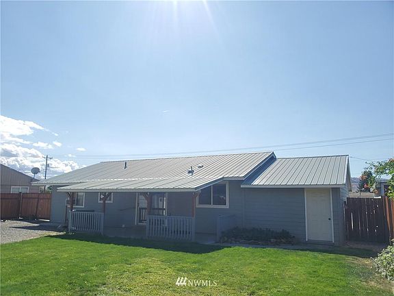 PRIVATE BACK YARD at this 3 bed/1.75 Omak home in convenient location. Living room, kitchen with all appliances & tile countertops, dining with slider to covered back patio. Master bed/bath suite. Utility room with W/D, sink, folding table. Full bath with newer tub. Extra storage room/pantry. Some upgraded wiring, plumbing, windows, paint & more. Fenced back yard, sprinkler system front and back. Detached oversized 1 car garage with workshop, spot for wd stove & newer roll-up door. Storage lean-to off garage. Cement board siding, metal roof. Covered front porch and back patio. $220,000 H-2980/MLS1829362