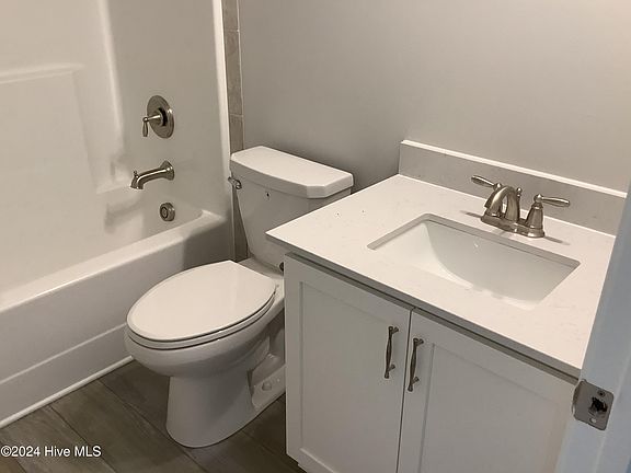 2 additional bedrooms on first floor with hall access to full bathroom with vanity, tub/shower combination with tile surround, and lvp flooring.
