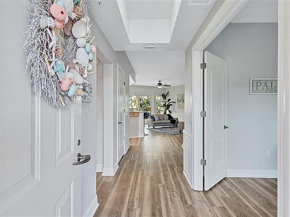 Welcome to your serene retreat at The Palms of Riviera Dunes! Step into this beautifully maintained 2-bedroom plus den, 2-bath condo, thoughtfully designed with a split floor plan that provides comfort and privacy between the two bedroom suites—ideal for guests or a flexible home workspace. The inviting open-concept living and dining area blends seamlessly with the expansive private balcony, creating an effortless indoor–outdoor flow. Here, you can unwind, enjoy peaceful views of the lush grounds and tranquil, fountain-accented ponds, or set the stage for memorable evenings under the Florida sky. The spacious primary suite features an elegant en-suite bathroom, a walk-in closet, and an additional built-in closet, offering generous storage options. A separate den provides endless versatility—perfect for a home office, reading nook, or extra bedroom. This residence also includes a dedicated on-site storage unit, ideal for bikes, beach gear, hobby items, and seasonal décor, along with one assigned covered parking space for added convenience. At The Palms, you’ll enjoy a vibrant, resort-style atmosphere with amenities designed for relaxation and connection. Just steps from your door, the community offers a sprawling heated pool, fitness center, and an expansive outdoor grilling and seating terrace—perfect for hosting friends, enjoying casual meals outside, or simply taking in the fresh air. Additional gathering spaces create an inviting environment for socializing or unwinding. Located in an exceptional central corridor, you’ll appreciate easy access to restaurants, shopping, medical facilities, entertainment venues, and world-famous beaches. Tampa, St. Pete, Sarasota, and the Sarasota–Bradenton International Airport are all within approximately 35 miles. The property is also adjacent to the Bradenton Area Convention Center and the newly opened Marriott, which regularly hosts popular events and activities. This condo offers a rare blend of comfort, convenience, and elevated Florida living. Seller is motivated offering the potential for a smoother, quicker closing. Furniture available under separate contract.