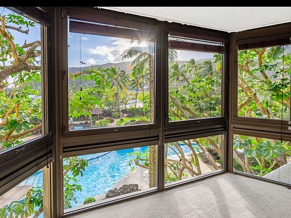 Remodeled, 2 bedroom, 1&1/2 bath, 2 uncovered parking unit, includes carpeted floors, in the highly desirable Mauna Luan Condominium with unmatched resort like facilities. Two giant swimming pools, multiple jacuzzis, waterslides, private BBQ areas, large recreation area, fitness center with saunas. Go to the Mauna Luan website for a full list and photos for the extensive amenities. Furnished in tropical style perfect for island living. Unit offers a great view overlooking the pool and lush landscape. Looking for long term tenants please.