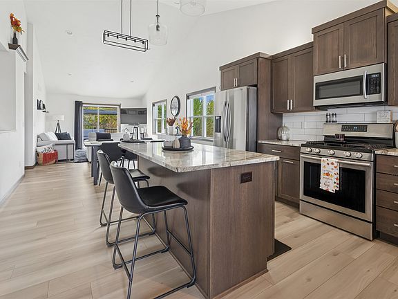 This stunning 1-story home offers cathedral ceilings and an open-concept layout connecting the kitchen, dining and living areas for seamless entertaining. The gourmet kitchen features a huge granite island and modern finishes. Enjoy first-floor laundry and easy access to the outdoors through a sliding glass door leading to a newly expanded composite deck. With 3 bedrooms and 3 full baths—including one bed and bath in the lower level—there’s room for everyone. The finished basement also includes a cozy living area and a stylish dry bar. Step outside to a peaceful backyard with scenic views of trees and direct access to a public walking path—perfect for early morning or late-night strolls. Zero lot line.