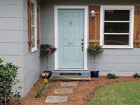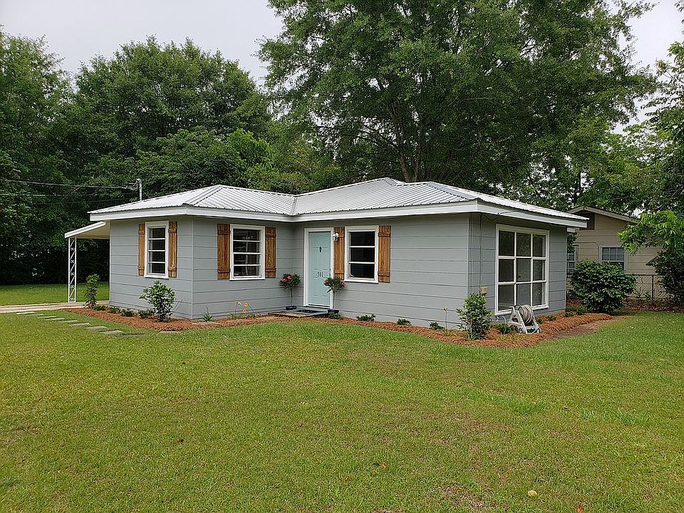 This adorable little 1950s cottage home, has just been totally renovated inside and out. This 1005 sq. ft. home is perfect for a first time home buyer, a single person, young family, a retiree or even for empty nesters, who just want to downsize. It would also be an excellent investment property. It offers 2 bedrooms, 1 bath, dining room (or possible 3rd bedroom, due to configuration), carport, a storage building in the back, on a private corner lot. It has new light fixtures/ceiling fans, newly painted, with new vinyl plank flooring throughout. Comes with a stove and refrigerator. Metal roof installed 3 years ago. Included in the selling price will be all new, white double paned, energy efficient, vinyl windows, to be installed as soon as they arrive from the manufacturer. This alone is a $7,000 upgrade. The outside features a new modern paint scheme, new wood shutters and that pretty blue front door adds the perfect pop of color! The new landscaping, plants, and pine straw is the icing on the cake. This little gem will not last long. It is conveniently located to Southeast Health, and Cottonwood Corners Shopping Center. Sorry, but no rent to own or owner financing.