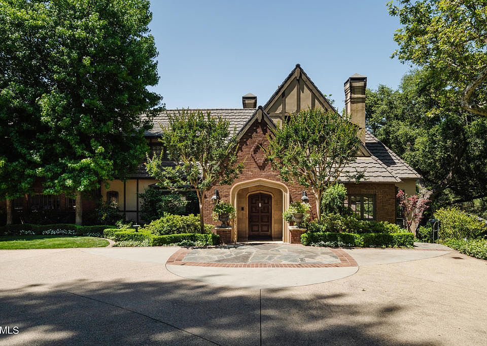 Welcome to The Oaks, nestled on an expansive nearly 3 acre property with magical gardens. This extraordinary gated estate on two parcels transports you to a world of timeless beauty and serenity. Privately sited in a highly desirable location in La Canada Flintridge, the grounds are a rare discovery, including lighted pathways, lush landscaping, natural and built environments with three streams. Completely remodeled in 2003 by Bill Abel, the Tudor architecture was thoughtfully designed with custom craftsmanship, intricate detail, and an excellent floor plan. A grand front entry features coffered, vaulted ceilings with sweeping staircase and railings, custom parquet hardwood floors and stunning chandelier. The impeccable living room is a statement, with its marble fireplace, custom carved wood entryway, parquet hardwood floors, custom light fixtures and Juliet balconies. A formal dining room is complete with rich herringbone hardwood floors, coffered ceiling, exquisite chandelier and sconces and leaded glass windows. The gourmet kitchen is equipped with top-of-the-line appliances, large island with counter seating, and a convenient barbeque patio. Adjacent, the family and breakfast rooms are comfortable yet elegant with several windows to capture the breathtaking views of the Foothill mountains and gardens. The estate boasts multiple additional living areas on the main level, including a sunroom, office, two powder bathrooms, Butler's pantry and laundry room. The upper level features four bedroom suites and office, including the luxurious primary retreat with a marble fireplace, sitting area, balcony, large closet with custom shelving, and 140 degree views of mountains & gardens. The office/5th bedroom option has a private patio, built-in stand up desk, separate large closet for printer & refrigerator, extensive views and more. The allure of the estate continues to the lower level with a den/recreation room, 5th bedroom/gym, sauna, half bath, and 3/4 bathroom for pool access, craft room and storage rooms. The estate extends to the magnificent outdoor patios with built-in barbeque, koi pond, multiple dining areas and steps down to a sparkling pool and spa. As you venture down a meandering pathway, you will discover a unique Tea House crafted with redwood and tile roof, and a charming Art studio below. A spacious driveway and motor court leads to a three car attached garage with attic storage. Award winning La Canada Schools.