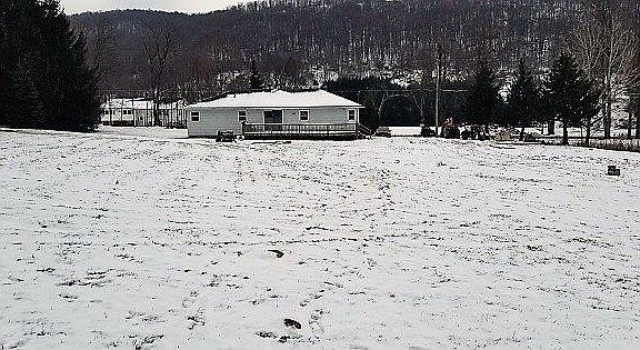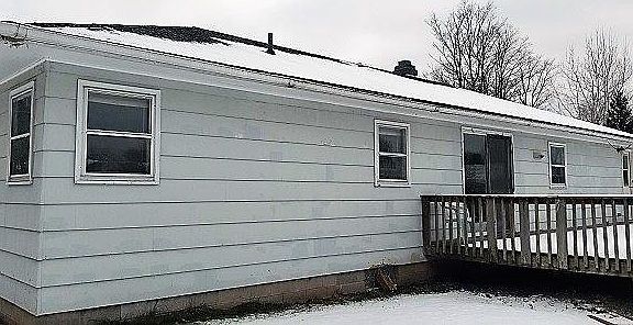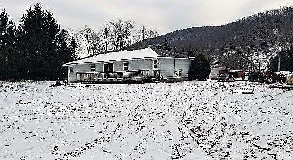 PINTREST lovers look here! Three bedroom ranch on Acre lot. Let your design and DIY ideas explode here. Hardwood floors in all three bedrooms. Kitchen and dining area combination with slider to deck that runs a generous length of the house. Master bedroom has own door to the full bathroom. Attractive Stone, wood burning fireplace in the living room. Laundry room off kitchen with door to garage and back door to deck and yard. Full DRY basement with wood burning furnace ready for a Hot Air furnace as well. Attached garage has storage above. Level lot, nice distant views and storage outbuilding.