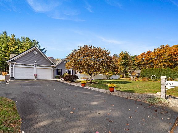 Lovely, meticulously maintained 3-bed, 2-bath Ranch offering easy one-level living. A brick paver walkway leads to the enclosed front entry of this light-filled home featuring hardwood floors throughout. The spacious living room is highlighted by a vaulted ceiling, two skylights, and gas fireplace. The kitchen offers an inviting eat-in area with a bay window and a separate dining room that transitions seamlessly to the living room - perfect for gatherings and everyday living. A pot filler above the range and reverse osmosis at the sink add thoughtful touches for the home chef. The large primary suite includes a renovated full bath and walk-in closet, while two additional bedrooms share a second full bath. Convenient main-level laundry is located off the kitchen. Enjoy the beautifully landscaped, fully fenced yard w/flower beds, two entry gates, and a large paver patio shaded by three sun sails - patio furniture included. Storage abounds with a 12'x16' Barnyard wood shed plus 3 smaller vinyl sheds for tools and hobbies. Additional features include a LeafGuard gutter system, 35-yr architectural roof, 5-zone irrigation, Andersen thermal windows and slider, paid solar system and whole-house water filtration system. Oversized garage with utility sink and HC ramp. The partially finished lower level adds 725 sq.ft. flexible living space for entertaining, home office or media room. Enjoy effortless one-level living in a home that blends thoughtful updates with timeless appeal! The town has the home listed as having 2 and 1/2 baths, but that is incorrect. There are 2 full baths.