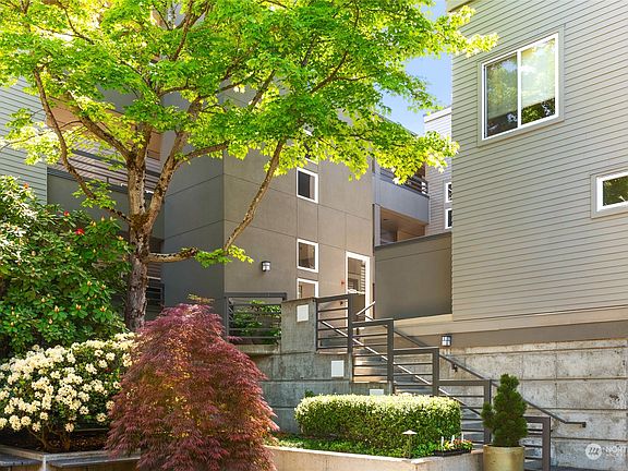 Finest location in the 25-unit community of Brightwater! This corner two-story urban oasis lives like a single-family home. The upper living space is enhanced by a wall of west & south-facing windows creating a light-filled retreat that seamlessly integrates w/nature. Slab granite kit, SS appliances, soaring ceilings, multiple skylights & grand open staircase complete this light-filled sanctuary. Escape to your lower-level expansive primary BR featuring 5-piece BA & generous walk-in closet + 2nd BR & laundry rm. Walker’s Paradise-easy stroll to Kirkland Urban, PCC, Library, Performing Arts Center, Pool, Restaurants & Google Campus-embrace leaving your car behind. 3 outdoor patios, storage unit & 2 covered parking spaces w/stairs to unit.