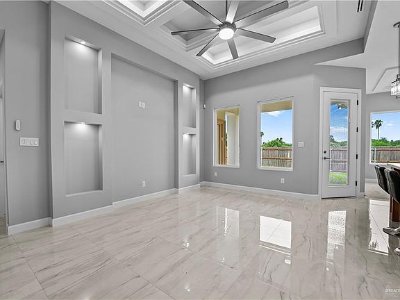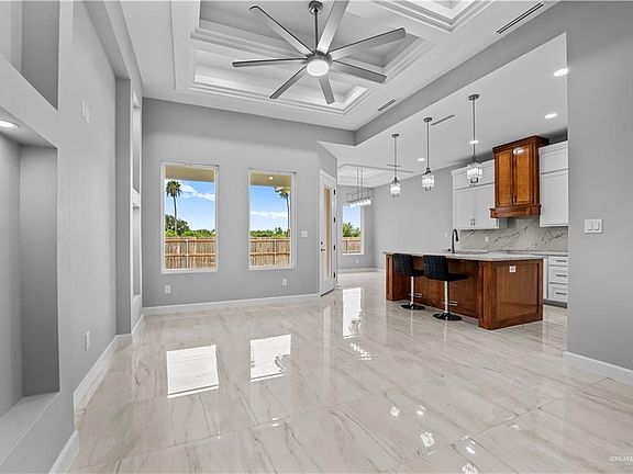 Located in Mission, Texas with quick access to major highways, this stunning home offers the perfect balance of comfort & accessibility. Featuring 1,601 sqft of living space, this 3 bed, 2.5 bath home is thoughtfully designed with an open-concept layout ideal for hosting family gatherings & entertaining guests. The entire home boasts tiled flooring & modern quartz countertops in both the kitchen & bathrooms. The spacious master suite includes a double vanity sink, private commode, separate tiled shower, & a generously sized walk-in closet. One of the additional bedrooms includes a convenient half bath with direct access to the outdoor patio, making it perfect for guests or backyard entertaining. The front bedroom also offers a walk-in closet, providing ample storage space. Whether you're looking for a family-friendly layout or a great location for commuting and convenience, this home has it all.