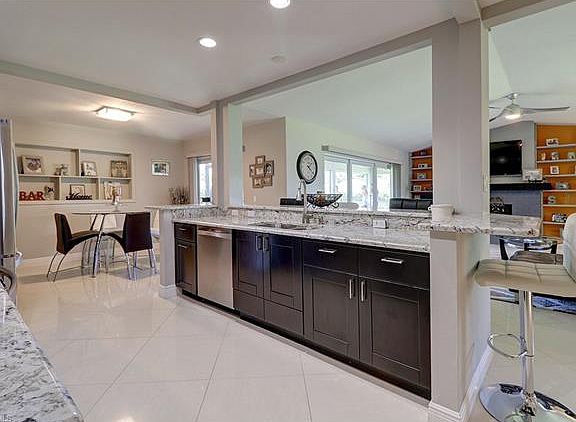 Beautifully remodeled home in central Naples location. This wonderful home has been thoughtfully and thoroughly remodeled. Within its 2102 square feet, you will have 4 bedrooms which consist of, 2 full master suites and 2 guest bedrooms, and three full baths. Feel right at home with its contemporary colors and modern design features. Not only have the aesthetics been carefully updated to the current beautiful condition, the roof, AC, water heater, appliances, and flooring have also been recently replaced. Flooring in this home consists of only tile with a chic classy look. Not only are the floors in this home beautiful, the lanai has been tiled and the garage floor has been coated as well. Additional storage cabinets in the garage have also been added. If all of this is not enough, enjoy the added safety and noise reduction of impact rated doors and windows throughout the home. Move right in and enjoy modern appointments and a feel of new, in a centrally located, mature community. Just minutes to downtown Naples as well as minutes to the Naples airport and North Naples shopping.