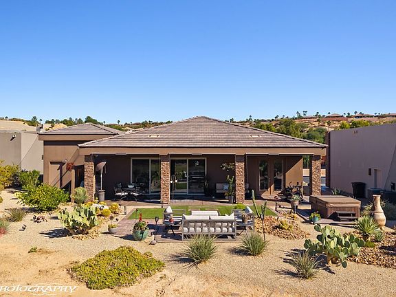 Beautiful desert scaped backyardCustom draperyMotorized privacy shadesSplit bedroomsChefs gourmet island kitchenOpen concept livingLarge hidden pantry