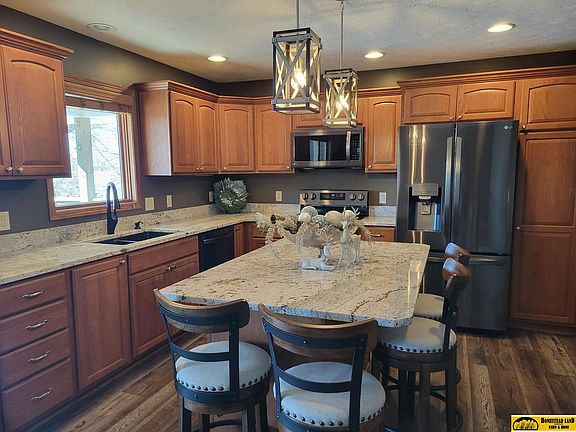 Contract Pending with 24 hr FRR. Come view this move-in ready ranch home built in 2005 in the village of Pickrell, a community between Beatrice & Lincoln. Step into the entry & family room with fireplace. The kitchen was remodeled with granite countertops, new flooring & lighting & appliances. Nice size pantry & main floor laundry room. The informal dining has a patio door to a 22'x9'8" deck.The primary bedroom & bath has double sinks & nice storage along with walk-in closet. 2nd floor bedroom has double closets. Open stairway to the lower level has family room for entertaining with small game room & bar area that features bar frig, TV, bar stools & speakers. This lower level has 2 additional bedrooms & bath. Nice storage & mechanicals include newer heat pump, backup furnace, water softener & HWH. This walkout features a large 28x22' patio & the 100x150 lot has 12x14 storage shed. The attached garage has professional epoxy flooring, heater, storage closet, cabinets & ceiling fan.