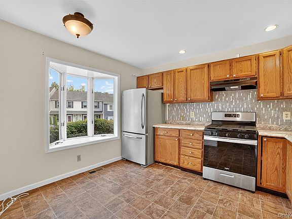 Welcome to this beautifully maintained and move-in-ready townhouse-style condo! The bright eat-in kitchen features granite countertops and a convenient pass-through window to the dining room - perfect for entertaining. The dining area flows seamlessly into the cozy living room, complete with a wood-burning fireplace and SGD that open to a private deck. A powder room on the main level adds convenience for guests. Upstairs, the primary bedroom boasts a primary bath with two spacious closets. The second bedroom also includes its own full bath with two closets, offering tons of storage. The finished lower level expands your living space and features SGD to the patio, a half bath, and the laundry area - ideal for a family room, home office, or guest space. Two assigned parking spaces plus visitor parking, Located in a desirable community with convenient access to local amenities: Metro North, tons of restaurants and shopping. This condo offers comfort, style, and functionality. Don’t miss your chance to call it home!