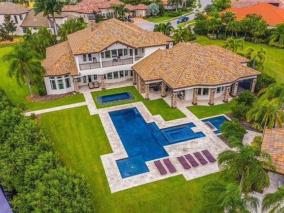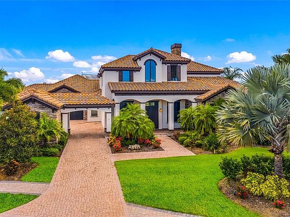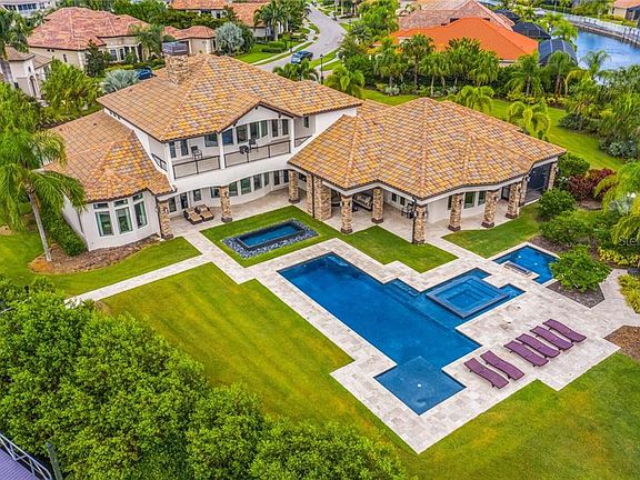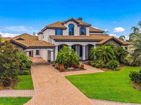New to the market in Harbour Walk at The Inlets, this estate site on over an acre of waterfront! This architect designed masterpiece was quality constructed by Anchor Builders in 2013. The must see feature of this home is the resort style pool area that rivals many of the hotels in the area. With a separate private spa, sun splash platform and a design large enough for laps. Also featuring gorgeous pebble-tec, numerous water features and a gas fire pit. Next to pool is covered cabana matched to the home, ideal for your summer kitchen and pre-wired/pre-plumbed for it. This expansive property covers three home sites at the end of the cul de sac, one of which lots could host a guest house or be sold separately. There is 562 feet of seawall, composite floating boat dock and a fixed dock with davits, which could host a motor yacht in excess of 65 feet and already wired for electric hook up and water. In side, this impressive home has 22 ft ceilings as you enter and nearly 6000 square feet of professionally decorated living space. From the sensational hand scraped distressed hard wood floors, the charming fireplace adorned in stacked stone and custom wood, or the all Meile equipped kitchen...this home does not disappoint. Attention to details such as the Lumicore basksplash and use of stone are just amazing. In addition to the four suites, you will find a media room and two offices. This masterpiece is a must see offering on of kind opportunities on the water with immediate access to the Manatee River, Bay and Gulf of Mexico. Call today for your private tour!