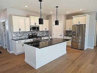 Beautiful 5 bedroom, 4 bath executive home located in the highly sought after Mystic Creek. This home is situated on a corner lot as well as a Cul-de-Sac. Walk into vaulted ceilings, big windows, a living room/ dining room, and a kitchen combination. The hallway leads you to a full bathroom, bedroom, and the primary bedroom which is huge with an amazing double sink vanity, huge walk in shower, toilet and walk-in closet. The main bath has a tub and tile decor. The attention to detail and craftsmanship is seen throughout the home including the soft touch cabinetry, stainless steel appliances, and lighting. A magnificent pantry and huge island for entertaining and gathering of friends and family. Walk off the dining slider onto the deck for outdoor fun or walk down the stairs to the patio. The lower level has a spacious family room with fireplace, 2 Bedrooms, and another full bath. Don't miss the chance to make it yours! Ask about contract for deed or renting this home!