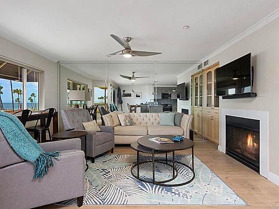 Whether you're in search of a permanent residence, second home, or an investment opportunity, this unit presents an impeccable combination of scenic vistas, prime location, and desirable lifestyle amenities.Start your mornings with the sound of waves and soak in the breathtaking Pacific panoramas from your private balcony with this charming two-bedroom single-level condo, mere steps away from the sandy shores. Inside, the welcoming open-plan layout ensures that the living room, kitchen, and dining area all boast stunning ocean views, seamlessly integrating the beauty of the sea into every aspect of your home. The kitchen has undergone a tasteful remodel with modern stainless-steel appliances, elegant fixtures, and premium finishes that seamlessly marry style with functionality. The living area includes a cozy fireplace, inviting you to unwind while embracing the serene coastal ambiance. The primary bedroom features a convenient walk-in closet and en-suite bathroom, while the newly remodeled second bedroom boasts fresh wood flooring and ample built-in storage, complemented by a space-saving "Murphy" bed, perfect for daily use or accommodating guests. Hardwood and tile floors add a touch of coastal charm, enhanced by the convenience of in-unit laundry and secured parking for two vehicles. Enjoy leisurely strolls to the nearby pier, immersing yourself in the coastal lifestyle. Indulge in local culinary delights or savor a cup of coffee at nearby cafes, with proximity to the train station offering easy access to surrounding attractions. San Miguel II boasts well-maintained amenities, including two community spas overlooking the coastline, beach access, and gated parking for residents and guests accessible by elevators. Seize the opportunity to make this seaside retreat your own – a haven where every day feels like a vacation!