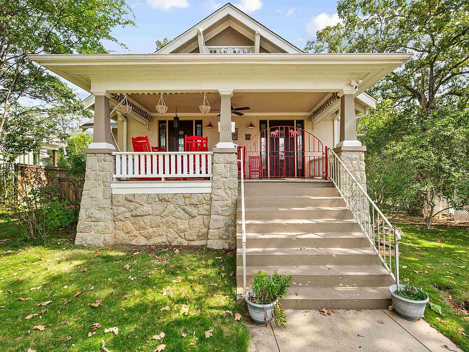 This truly special craftsman home in Hillcrest, listed on the Historic Registry, blends timeless architecture with modern updates. The main level was fully remodeled in 2024 with a custom kitchen, whimsical backsplash, matching dining cabinetry and all new appliances. 2 bedrooms sit on the main floor, while the spacious downstairs primary suite offers a massive walk-in closet, sitting area, office and walk-out to the backyard. Downstairs' reno in 2018 included 2 sump pumps, a tankless water heater, and updated systems to ensure comfort and efficiency. Attic is floored, partially finished, and heated/cooled—for storage or future expansion. The guest cottage has new flooring and new AC. The corner lot and a half features towering oaks, crepe myrtles, and a charming rock wall fully fenced backyard that includes a storage shed and private access to the guest cottage and driveway that provides drive-through parking from the alley to Lee Street. From here, you’re just 2 blocks from Kroger and 3 blocks from Kavanaugh’s shops, restaurants and cafés. It's not just a home, it's a lifestyle! Attic and cottage sq ft not included in listed sq ft. Paint concession available w/good offer.