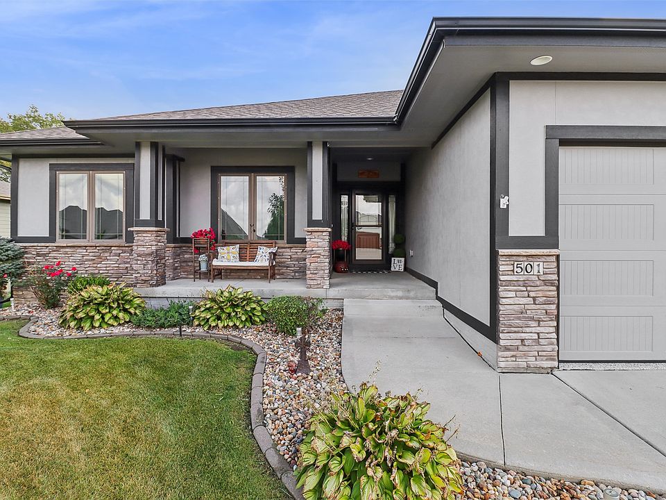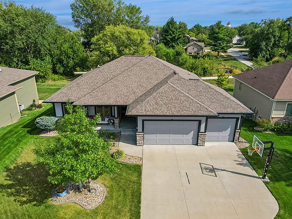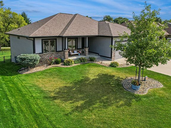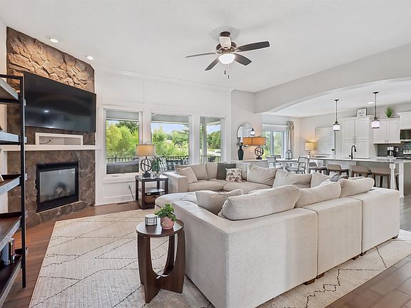 Immaculately cared-for walkout ranch with stylish design & an open, sun-filled layout. Expansive windows flood the family room, dining area & kitchen with natural light. The kitchen features a large island w/casual bar seating, sleek finishes, & a walk-in pantry. A front flex room provides space for an office or an extra bedroom. While the covered deck and newly landscaped backyard with a brand new patio & fire pit create perfect spots for relaxing or entertaining. The main floor primary suite offers a generous walk-in closet and beautifully finished bath. The finished lower level includes a wet bar, large family room, & 2 bedrooms with a full bath. Recent epoxy flooring in the 3-car garage adds a modern touch. Nestled on a quiet cul-de-sac in a wonderful neighborhood-this home truly reflects pride of ownership and is the definition of a move in ready home!