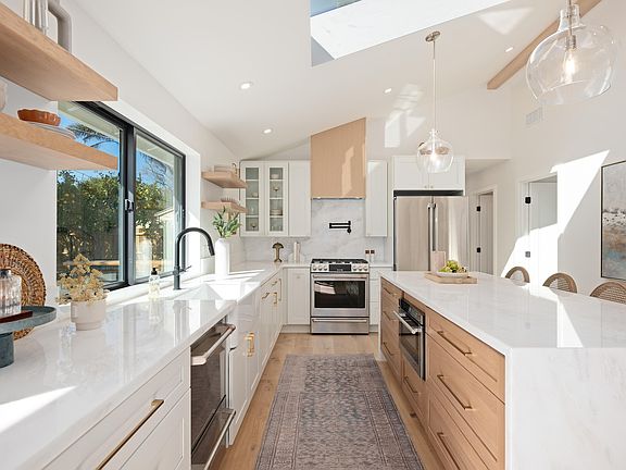 Nestled on a quiet cul-de-sac in the highly regarded Vieja Valley School District, this beautifully remodeled single-level 3-bedroom, 2-bath home is a rare find. Rebuilt in 2024 from the studs out, nearly every aspect has been thoughtfully upgraded, including all-new systems, doors, windows, roof, kitchen and baths. Airy open-concept design features vaulted ceilings, skylights, a cozy fireplace, and large flex room. Designed for seamless indoor-outdoor living, the home opens to a spacious fenced yard with large deck and producing avocado and citrus trees—offering endless possibilities for relaxation and entertaining. Centrally located near Upper State Street's shopping and dining, and a short drive to the beach, this turnkey home offers modern upgrades, privacy, and unbeatable location.