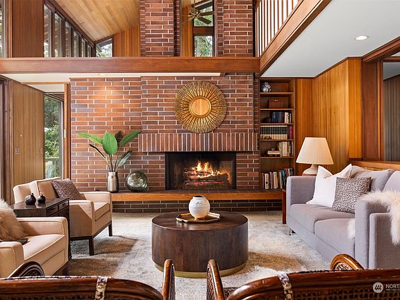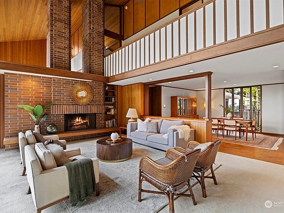 Waltz into this meticulously maintained 1969 gem, a true time capsule showcasing the mastery of midcentury design. Vaulted ceilings and a wall of windows bathe the space in natural light, while the smart layout offers a bedroom corridor separate from the primary suite, plus 2 bonus rooms with their own loft spaces. The lower level boasts a versatile bonus room, complete with a pool table and your very own darkroom. Behind the carport, you'll find a private workshop, perfect for creative projects & additional storage. Trimmed trees line the property revealing a gorgeously framed view of Bellingham Bay and the San Juan Islands. The adjacent .7-acre lot offers endless possibilities, at 1.77 acres this property is a rare find with room to grow.