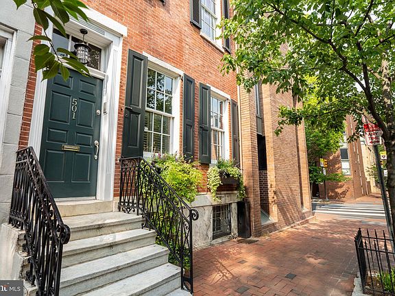 Impeccably designed four-story townhome with a finished lower level and spectacular backyard oasis along storied Pine Street. This gorgeous home boasts excellent entertaining space, hardwood floors, high ceilings, custom built-ins, incredible natural light, and multiple outdoor spaces including a one-of-a-kind rear patio with exquisite hardscaping. Enter the home through a vestibule with marble tile floor and glass-paned door into a light-filled living room boasting two large windows overlooking Pine Street, a gas fireplace with marble surround, large coat closet, and access to the grand central staircase with beautiful wood work and trim. Past the living room is the beautifully appointed chef's kitchen with flat wood cabinetry, granite countertops and backsplash, double bowl stainless steel sink with garbage disposal, center island with Dacor wine refrigerator and breakfast bar, and high-end stainless steel appliances including a Sub Zero refrigerator, Viking oven with six burner gas range and Faber hood, Wolf built-in microwave, and Miele dishwasher. Open to the kitchen is the formal dining space with room to easily fit an eight-person table and a spectacular view of the rear patio from a wall of floor-to-ceiling windows. From the lush climbing vines to the high stone walls, this gorgeous patio is the ideal private urban oasis. Features include bluestone pavers, built-in stone garden beds, water hookup, space for grilling and outdoor dining, and steps leading to the lower level. Unique to this type of home is the expansive finished lower level with standard ceiling height and incredible entertaining and storage space. There is a built-in entertainment center with display shelving and storage, built-in speakers, stone tiled powder room, open skylight looking upwards towards the center of the main staircase, secondary storage room behind a set of French doors, and a third storage room with easy access to the home's mechanicals. The second floor houses a cozy den/study with built-in entertainment center and bookcase and the primary suite. Off of the den is a large balcony nestled in the trees, that's perfect for enjoying a morning cup of coffee. The spacious primary suite features two large windows overlooking Pine Street, excellent closet space, built-in speakers, and an ensuite bathroom with designer marble tilework, double wooden vanity with marble top, and a glass-enclosed shower. The third floor has two large bedrooms both with ensuite bathrooms and excellent closet space. The rear bedroom is currently being used as an office and enjoys access to a French balcony. The front-facing bedroom has a laundry closet with stacked washer/dryer and a beautifully appointed bathroom with corner soaking tub. Walking up to the fourth floor, you will immediately notice the three-pane skylight that floods the staircase and room with natural light. There is a built-in desk nook, perfect for a home office, and a front-facing bedroom with marble appointed ensuite bathroom and wall closet. Additional home highlights include recessed lighting, 2GIG smart security system, Diamond wood floor inlay from the living to dining room, California closets all with custom-built-ins, and exquisite moldings and trim throughout. Located in the desirable Society Hill neighborhood walking distance to Washington Square and South Street. In close proximity to the Delaware River waterfront, incredible restaurants, parks, cafes, retail, theaters, and cultural institutions. There are multiple monthly parking options nearby, as well as ample on-street parking.