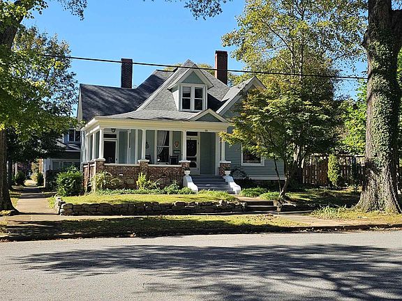 Walnut Street Historic District! This beautiful home includes 3 bedrooms, 2.5 baths, a lovely outdoor area with a large wrap around porch, all situated on a double lot with a pool and a pool house. The main house includes all original hardwood floors and other wood details, beautiful carved hardwood fireplace mantels in the living and dining rooms, a claw tub in the primary bath, and large closets through out. The pool house can be used as a guest house/mother-in-law suite, and includes a full kitchen, laundry room, full bath, dining room, and living room. The pool house also offers extra income potential