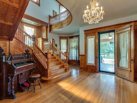 The nostalgic charm, character, and elegance of this Victorian classic will transport you to another time in history. Built in 1895, the exterior displays true Victorian architecture with a 3 story roofline, double turrets, and sweeping prairie style front porch. The interior showcases original hand carved wood work, expansive staircase in the front entry, and beautiful stained glass. The craftsmanship and attention to detail are present in each room of this meticulously maintained home. The home sits on over half an acre with a 2000+ sq. ft. detached garage. Garage space is ample for cars, workshop, and storage.